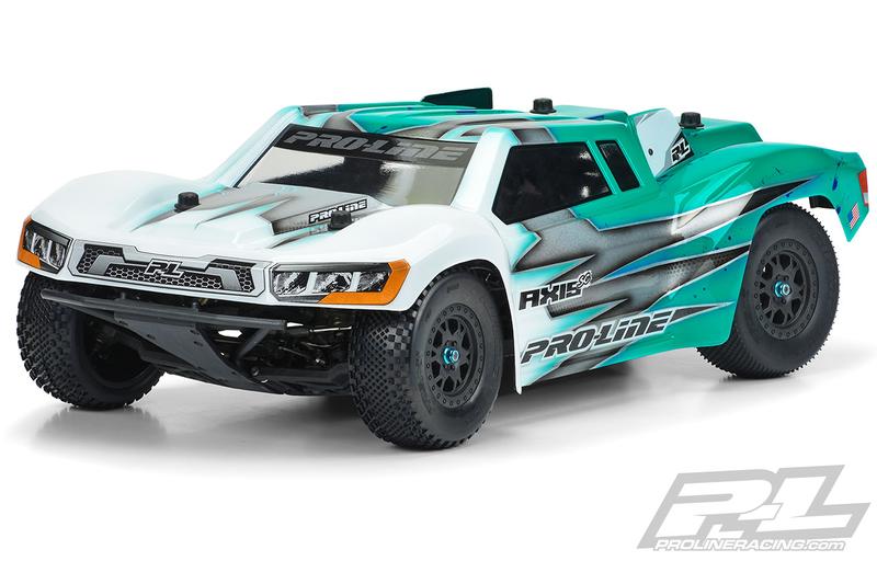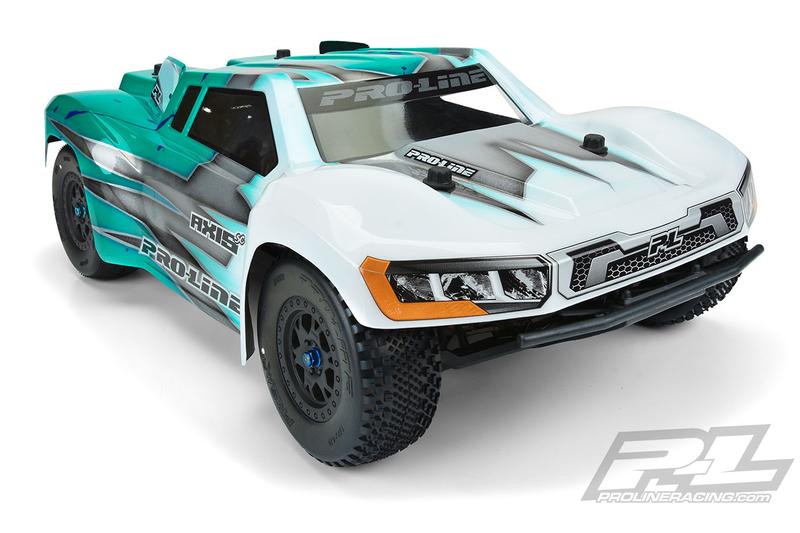 Proudly Made in the USA, the Axis is made from durable polycarbonate material that will give you an edge over the competition. Paint-then-peel overspray film, window masks and Pro-Line decals are included with the body. Hit the track in fresh, Pro-Line style with the all-new Axis SC race body!