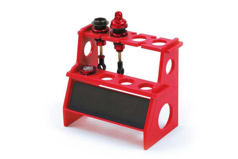 Dieses Multifunktionstalent von Robitronic dient in erster Linie als Hilfsmittel für das befüllen von bis zu 4 Stoßdämpfern - ideal für den Maßstab 1/10.