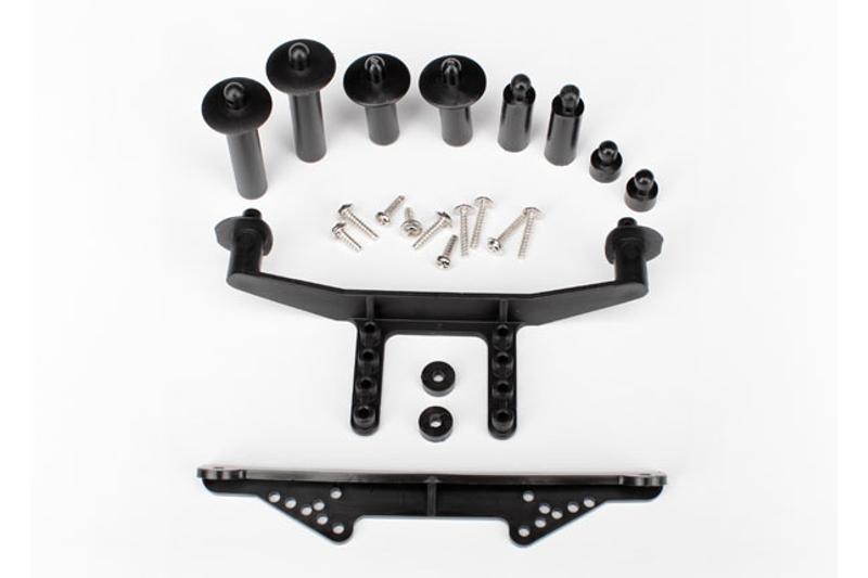 Body mount, front & rear (black)/ body posts, 52mm (2), 38mm (2), 25mm (2), 6.5mm (2)/ body post extensions (2)/ hardware