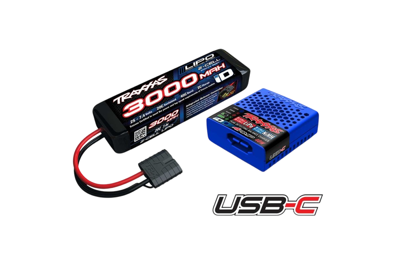 Traxxas USB-C 4A Lader + LiPo 3000mAh 2s 7,4V Set TRAXXAS mit iD-Akkuerkennung